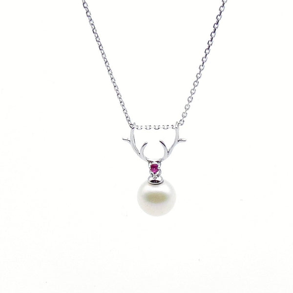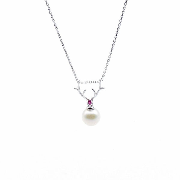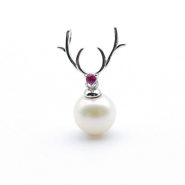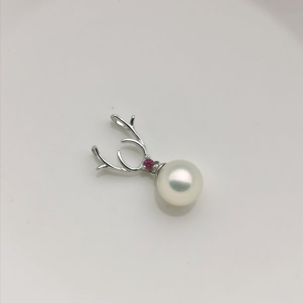 This cute deer pearl pendant, with excellent strong luster, no blemish, the middle stone is little red Cubic Zirconia.  Height 2cm